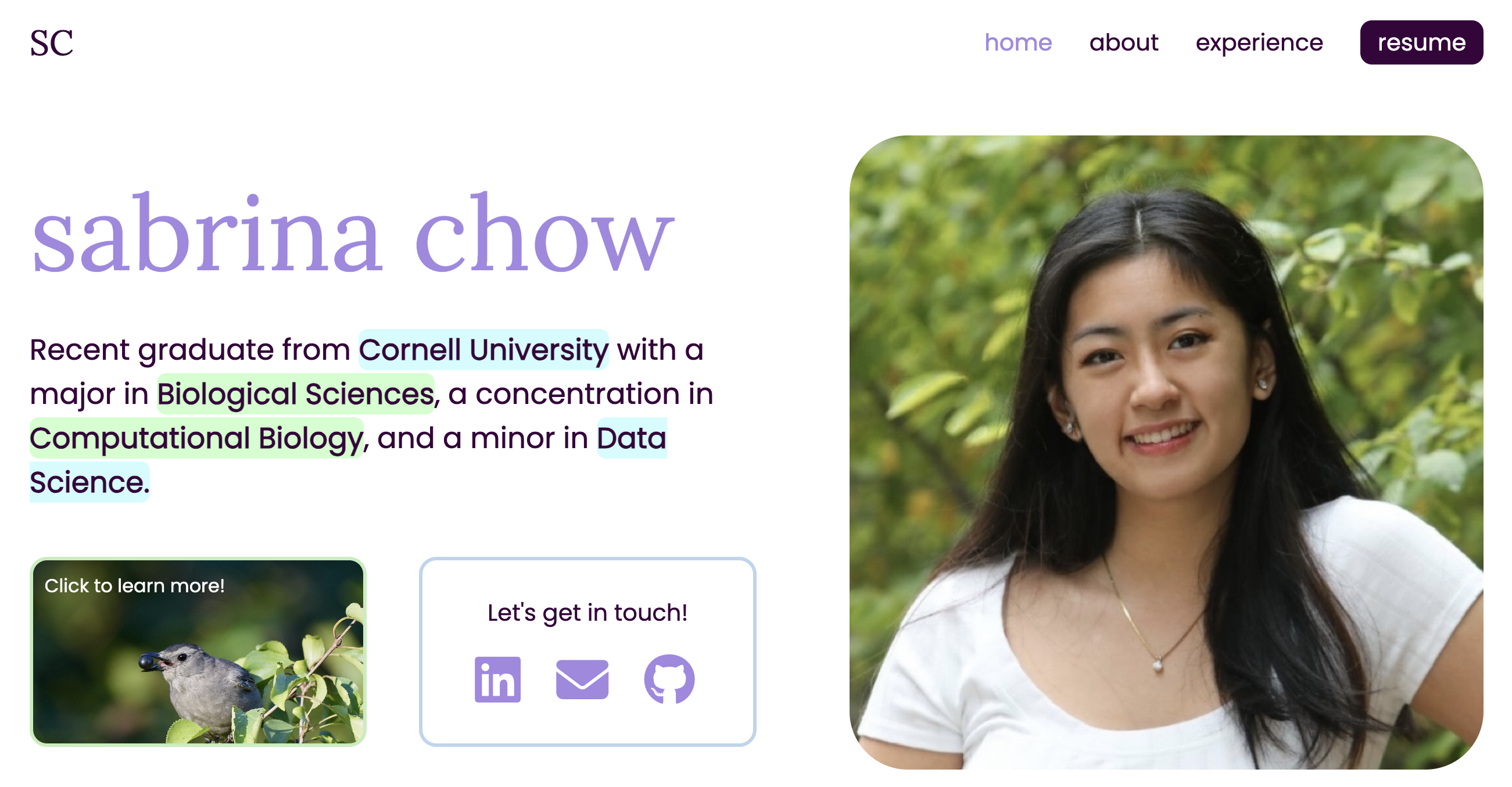 - Cornell University - B.A. in Biological Sciences Aug 2021 - May 2025